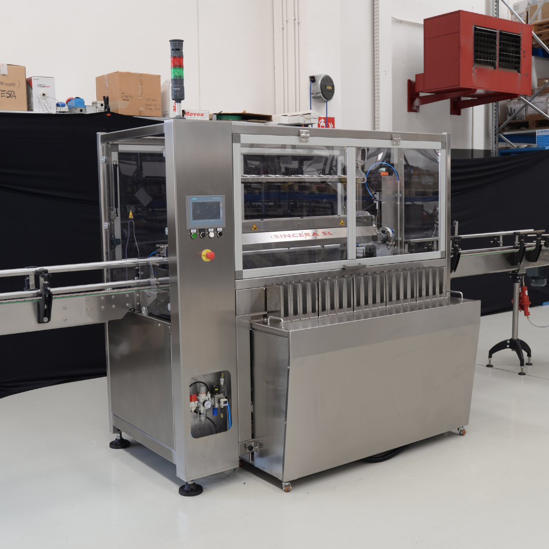 Sincera Sistemi 14 Compact model: automatic bottle waxing machine, with a production capacity of 1,500 bottles per hour.